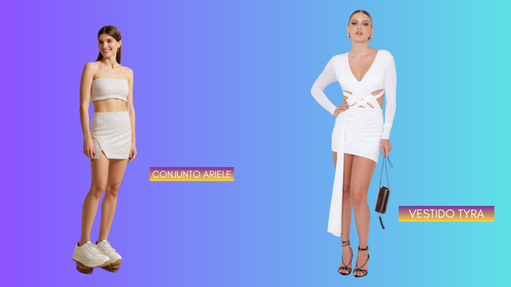 Para festas noturnas, o Vestido Celine e o Vestido Anahi são ótimas escolhas. O Vestido Celine se destaca pelo brilho e pelo design moderno. Assim, ele cria um visual marcante. Já o Vestido Anahi traz uma proposta ousada. Seus recortes valorizam a silhueta. Dessa forma, o look ganha impacto e personalidade.